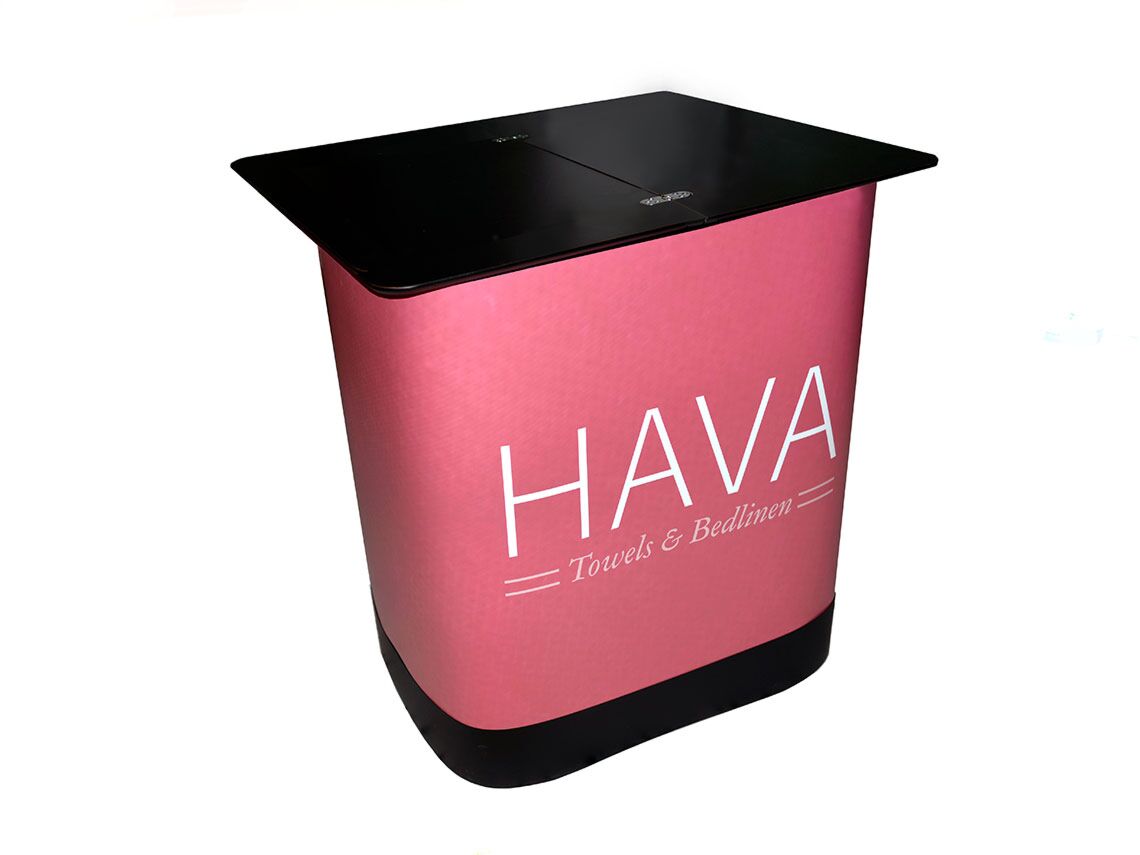 Une banque d’accueil aux dimensions généreuses – et deux containers de transportCette banque d’accueil spacieuse est idéale pour vos démonstrations de produits, événements et salons, et peut même servir de bar transportable. Pour le monter, il vous suffit d’ouvrir les deux containers et d’installer le grand plateau, un visuel sur le devant et les étagères à l’intérieur. Et voilà votre banque d’accueil prête à l’emploi ! Ainsi, vous disposez d’une part d’un espace d’accueil confortable pour recevoir vos clients, et d’autre part de vastes rangements intérieurs pour vos brochures, produits de démonstration, etc. Une fois l’événement terminé, rangez le tout dans les deux containers de transport. La plupart de nos produits s’y logent sans problème.